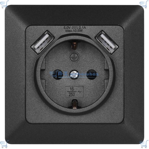 EMOS aljzat USB csatlakozóval, SCHUKO (250V/16A) IP20 - antracit
