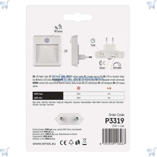 EMOS LED éjjeli fény (LED, 15lm, mozgás-, és fényérzékelő) - meleg fehér