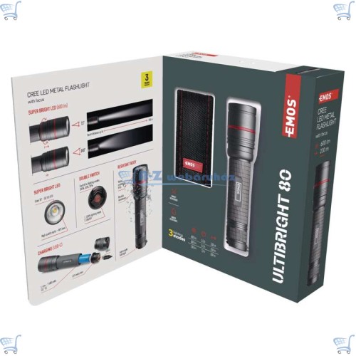 EMOS ULTIBRIGHT 80 CREE LED újratölthető, akkumulátoros fém elemlámpa (600lm, fókusz, vízálló)