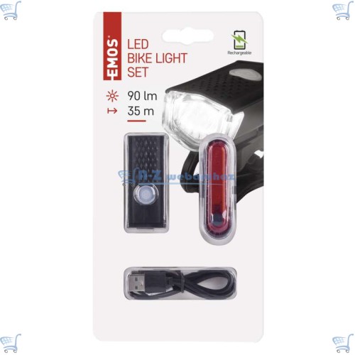 EMOS LED első + hátsó kerékpár lámpa szett, újratölthető (LED fehér 90lm, 5x LED piros)