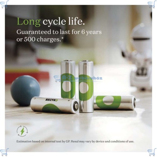 A ReCyko akkumulátorok a csomagolásból kivéve azonnal használhatóak. Ne legyen gondja az első feltöltésre, és ne aggódjon a hosszú tárolási időből adódó csökkenő teljesítmény miatt! A GP akkumulátorai ugyanis már gyárilag feltöltöttek, a piacon széles körben elterjedt akkumulátorok közül a leghosszabb üzemidővel rendelkeznek, ráadásul hosszú ideig képesek tárolni az energiát. Más akkumulátorokkal ellentétben már vásárláskor rendelkeznek a megadott kapacitással.